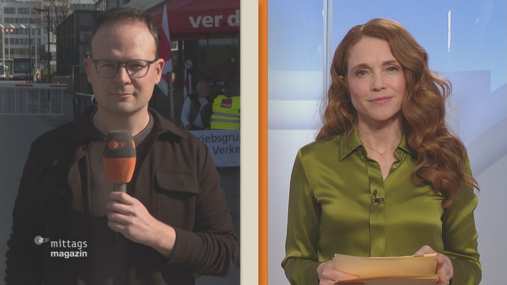 Wieder Streik im ÖPNV. Für das #mittagsmagazin von ZDF und ARD habe ich live darüber berichtet. Dieses Mal in Wiesbaden – und wir hatten gar Sonnenschein. Praktisch: Die Streikposten standen nur wenige Minuten von unserem Studio entfernt. Unschön: Ich habe Grund zur Annahme, dass die Streikenden bewusst ihre Musik während der Liveschalte aufgedreht haben – offenbar aus Ärger darüber, dass wir auch den Frust der Pendler thematisiert haben?! Schon bei unserer technischen Probe hatten sie sich darüber beschwert. Ich denke nicht, dass ihre Forderungen in der Berichterstattung zu kurz kamen. Immerhin: Man hat die Musik im Programm kaum gehört, irritierend war es für uns dennoch.